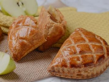 a turn-over made of crunchy flaky dough and filled with apple sauce