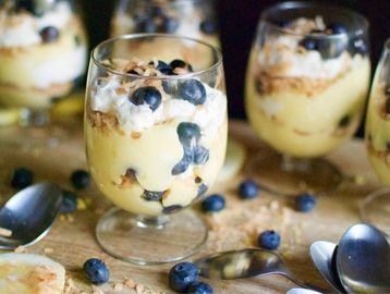 Lemon cake, lemon curd, fresh blueberries and whipped cream !