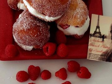 Beignets filled with cream and fresh rspberries, powdered with sugar... DECADENT !