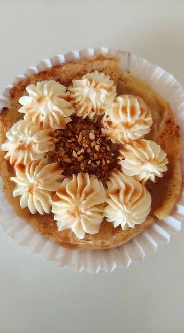 apple infused in a French vanilla syrup, roasted sliced almonds and whipped cream !