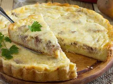 The famous Quiche Lorraine, a perfect breakfast pastry! Made with diced ham, cheese, and Sandrine's cream sauce.