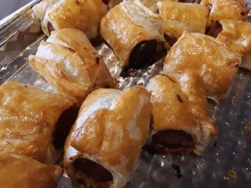 12 Classic Hot-Dog wrapped croissant baked golden brown served as bite-sized delights.