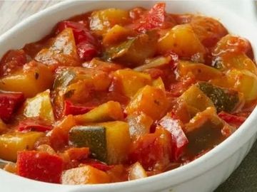 From the Provence region in France, a side dish made with all the Mediterranean vegetables - tomatoes, zucchini, red and green bell peppers, eggplants, simmered in a garlic,onion,olive oil and herbs of Provence tomato sauce.