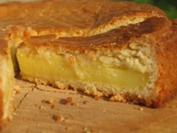 From the Basque region in France. A custard flavored with almond, baked between 2 layers of shortbread
