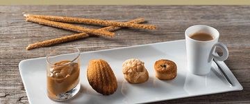 A typical French concept : a cup of coffee with an assortment of 4 mini pastries !