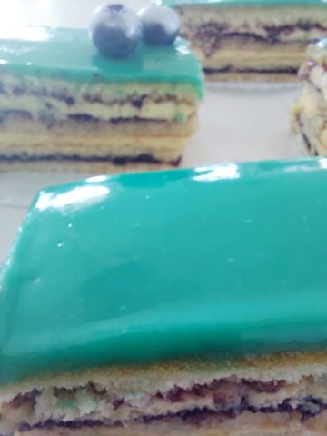 A layered pastry topped with icing. Alternating layers of puff pastry and delicious cream.