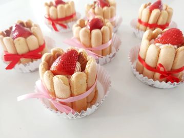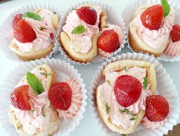 fresh strawberries, strawberry sauce, cream and lady fingers !