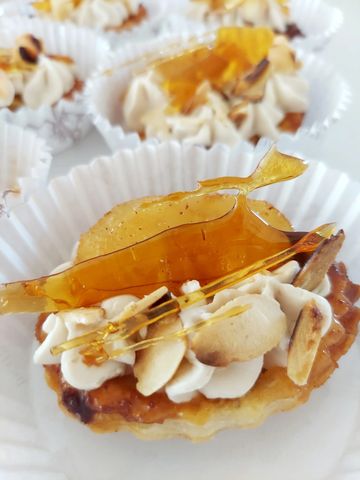 Originating from the Lorraine region of France, this family recipe was been baked by Sandrine's great uncle. He was a baker in the town of Commercy in the 1930s, and she uses his original recipe! A small cake in the shape of a shell, flavored with orange blossom.