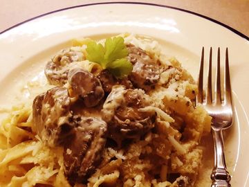 Handmade pasta, with creamy mushroom sauce topped with parmesan !