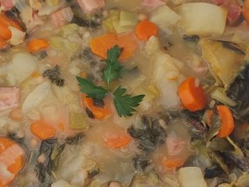 An assortment of vegetables and pork meats slowly cooked together, delicious !