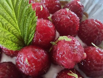 fresh raspeberries, raspberry sauce, cream and meringue !