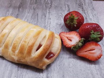A sweet flaky puff pastry, shaped like a heart and baked with love.