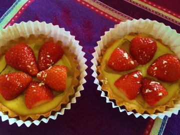 A rich and sweet French vanilla custard on a shortcake crust ! To be served chilled.